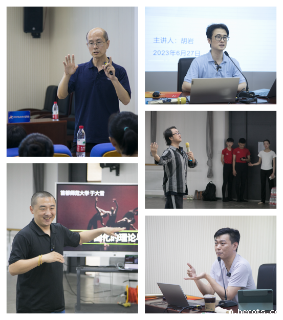 培训以加强中高等院校舞蹈表演专业“双师型”教师队伍建设、提升教师舞台实践技能与教学水平为目标,邀请了来自艺术类专业院校、院团等长期活跃在教学一线和舞蹈艺术表演领域的编导名家、行业大赛专家、表演艺术家、行业精英等,开展了为期5天的系列培训。培训涵盖舞蹈赛事标准解读、舞蹈精品创作专题、美育舞蹈教育专题三大板块,邀请中国文联边发吉副主席讲授《我们所处的时代与文化发展》、中国歌剧舞剧院国家一级编导夏广兴讲授《新时代舞蹈编创与理念的创新》、北京舞蹈学院教育学院胡岩副院长讲授《舞蹈形象的塑造》、北京舞蹈学院附中杨勇教授讲授《国家职业技能大赛中国舞表演赛项中职组中国古典舞基本功教材研修》、首都师范大学于大雪副教授讲授《爵士舞中国化的理论与实践》、邢台职业技术学院教师发展中心刘庆华教授讲授《以学生为中心的教学设计》、18luck快乐彩金暄副院长讲授《“大美育观”下的舞蹈美育教学实践探索》、18luck快乐彩舞蹈编导教研室高东主任讲授《以情制胜才有创新突破的可能——浅谈舞剧创作的几点体会》等内容,既有对文化传承与发展的宏观思考,也有对专业类技能大赛的微观解析,既有对舞蹈艺术教育规律的探寻,也有对舞蹈创作的实践体会。课程以理论与实践相结合、专题辅导与交流研讨相结合的形式开展,聚焦舞蹈表演专业教师专业技能、编创能力提升,以“职业岗位链-典型工作任务链-课程模块链”为主线,搭建贯穿表演艺术职业生涯始终的台前+幕后双向通道、多功能组合模块。