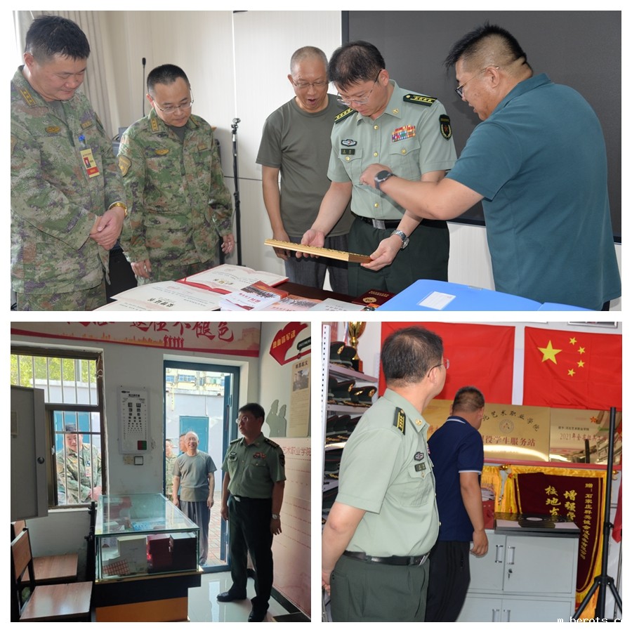 为深入贯彻习近平强军思想,促进高质量、高标准完成年度征兵任务,7月18日下午,石家庄市警备区副司令王丹、长安区人武部部长贾新凯、政委杨帆一行莅临18luck快乐彩调研指导征兵推进工作。学院党委副书记张国明,学生工作部(武装部)部长张安等陪同调研。