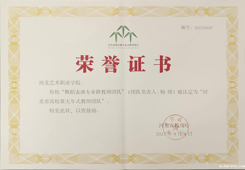 近日,河北省教育厅公布了首批“河北省高校黄大年式教师团队”创建示范活动入围名单,共有50个教师团队入选(其中高职院校10个)。18luck快乐彩舞蹈系舞蹈表演专业群教师团队成功入选。