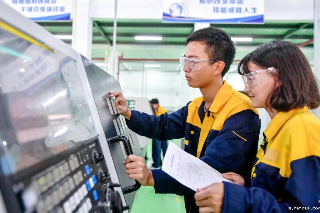 △今年4月,在贵州省丹寨县某公司数控设备实训车间,职业技术学校数控技术应用专业学生在上课。